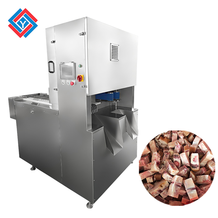 产品特色1. 双功能一体设计多段锯切:可同时完成多段切割(个性化定制4锯/6锯/8锯配置),适用于排骨、腿骨、冻肉等原料的批量处理。开半功能:猪脚、牛蹄等,精准对半剖开,切口平整,减少碎骨,提升出成率。2. 数字化设定触摸屏控制:参数可视化调节(切割速度、锯条选择等),支持一键切换功能模式。自动送料系统:链条输送稳定,配合防卡料设计,保障连续生产。3. 安全稳定多重防护:急停按钮、安全门开关、锯条脱落检测,确保操作安全。工业级配置:高功率电机+进口锯条,适应高强度作业;304不锈钢材质,防锈易清洁。